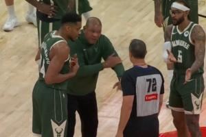 气疯了!字母哥连续被打+被撞没响哨 老里愤怒投诉!