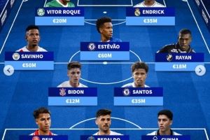 巴西U21最贵阵容:埃斯特旺6000万欧最高,罗克、恩德里克突前
